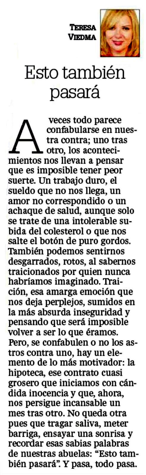 ESTO TAMBIÉN PASARÁ 19/04/2017 Descubre más desde TERESA VIEDMA JURADO Suscríbete y recibe las últimas entradas en tu correo electrónico. Escribe tu correo electrónico… Suscribirse Comparte esto: Haz clic para compartir en X (Se abre en una ventana nueva) X Haz clic para compartir en Facebook (Se abre en una ventana nueva) Facebook Haz clic para compartir en WhatsApp (Se abre en una ventana nueva) WhatsApp Más Haz clic para compartir en LinkedIn (Se abre en una ventana nueva) LinkedIn Me gusta Cargando... Relacionado
