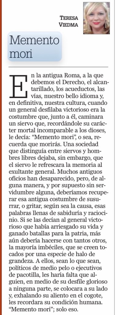 Memento mori Descubre más desde TERESA VIEDMA JURADO Suscríbete y recibe las últimas entradas en tu correo electrónico. Escribe tu correo electrónico… Suscribirse Comparte esto: Haz clic para compartir en X (Se abre en una ventana nueva) X Haz clic para compartir en Facebook (Se abre en una ventana nueva) Facebook Haz clic para compartir en WhatsApp (Se abre en una ventana nueva) WhatsApp Más Haz clic para compartir en LinkedIn (Se abre en una ventana nueva) LinkedIn Me gusta Cargando... Relacionado