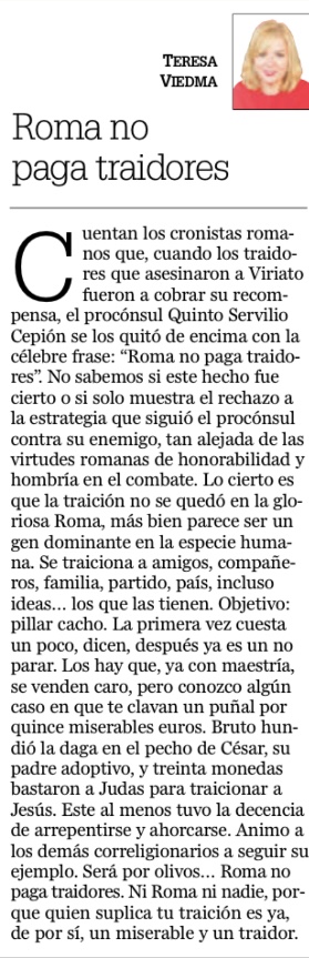 Roma no paga traidores Descubre más desde TERESA VIEDMA JURADO Suscríbete y recibe las últimas entradas en tu correo electrónico. Escribe tu correo electrónico… Suscribirse Comparte esto: Haz clic para compartir en X (Se abre en una ventana nueva) X Haz clic para compartir en Facebook (Se abre en una ventana nueva) Facebook Haz clic para compartir en WhatsApp (Se abre en una ventana nueva) WhatsApp Más Haz clic para compartir en LinkedIn (Se abre en una ventana nueva) LinkedIn Me gusta Cargando... Relacionado