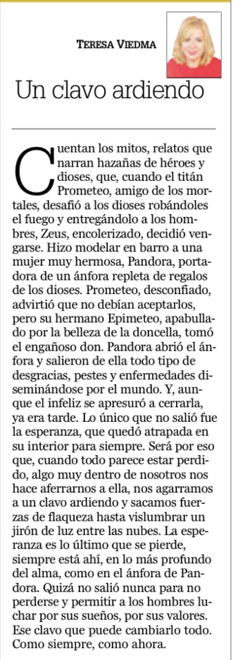 Un clavo ardiendo Publicado en Diario Jaén el 3/10/2023 Descubre más desde TERESA VIEDMA JURADO Suscríbete y recibe las últimas entradas en tu correo electrónico. Escribe tu correo electrónico… Suscribirse Comparte esto: Haz clic para compartir en X (Se abre en una ventana nueva) X Haz clic para compartir en Facebook (Se abre en una ventana nueva) Facebook Haz clic para compartir en WhatsApp (Se abre en una ventana nueva) WhatsApp Más Haz clic para compartir en LinkedIn (Se abre en una ventana nueva) LinkedIn Me gusta Cargando... Relacionado