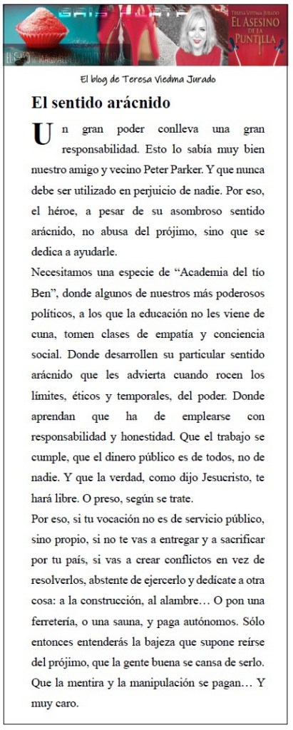 El sentido arácnido Publicado en Diario Jaén el 28/5/2024 Descubre más desde TERESA VIEDMA JURADO Suscríbete y recibe las últimas entradas en tu correo electrónico. Escribe tu correo electrónico… Suscribirse Comparte esto: Haz clic para compartir en X (Se abre en una ventana nueva) X Haz clic para compartir en Facebook (Se abre en una ventana nueva) Facebook Haz clic para compartir en WhatsApp (Se abre en una ventana nueva) WhatsApp Más Haz clic para compartir en LinkedIn (Se abre en una ventana nueva) LinkedIn Me gusta Cargando... Relacionado