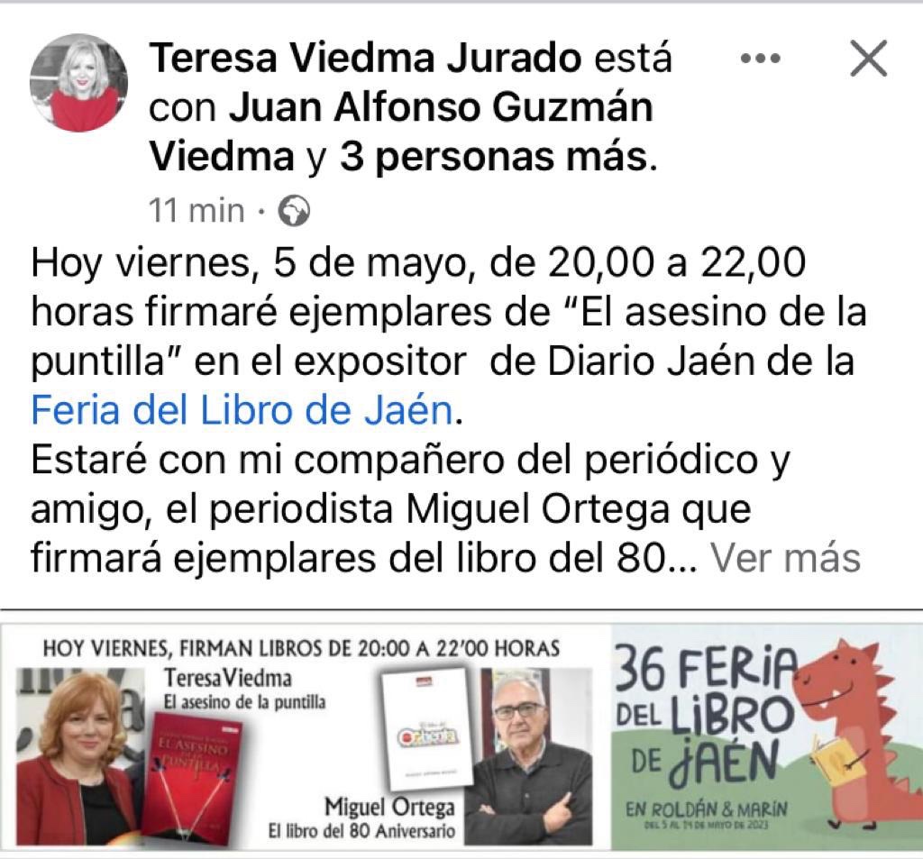 El próximo miércoles 10/5/2023 a las 20,00 en la 36 Feria del Libro de Jaén.