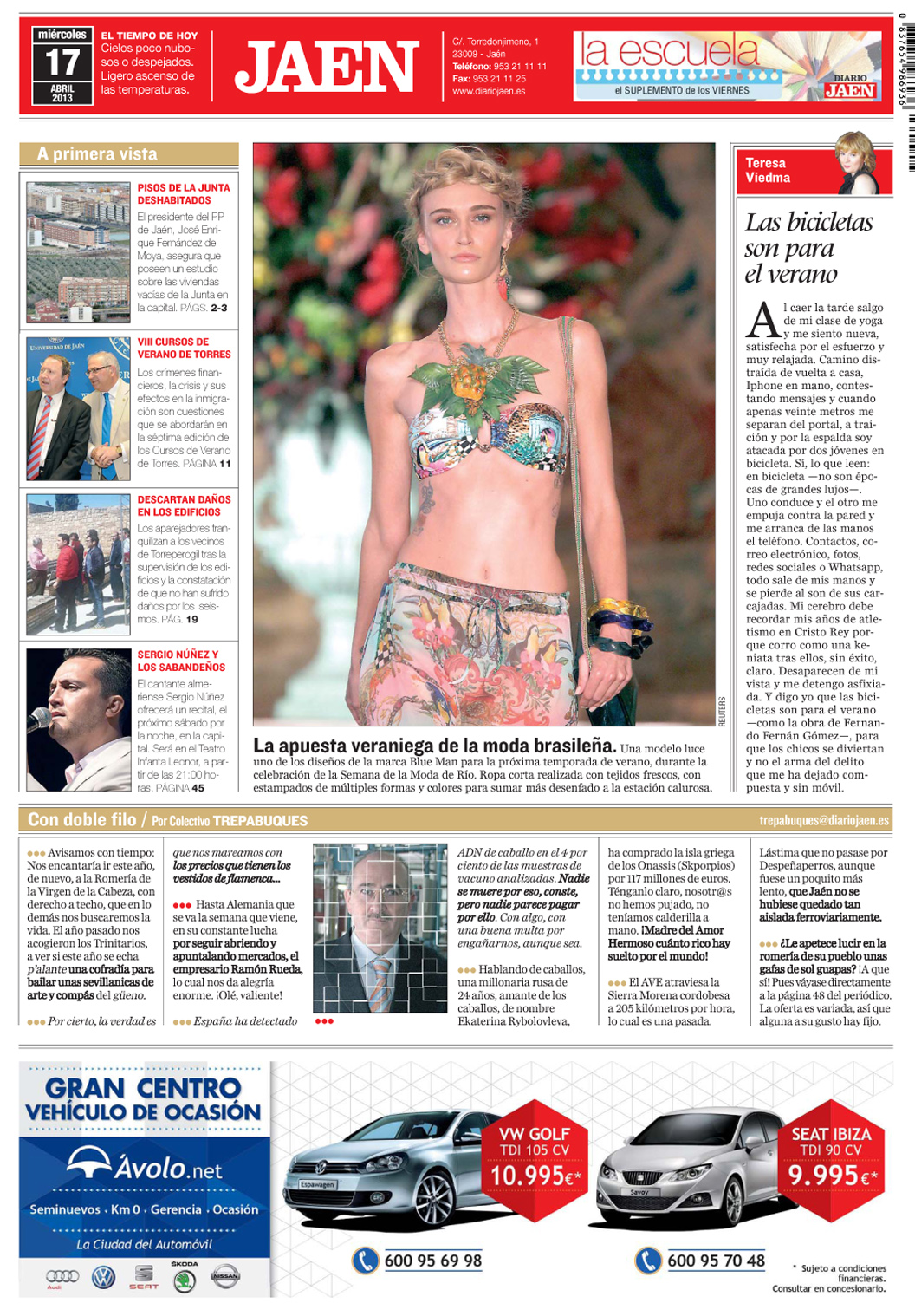 Avatar de DesconocidoAutor TeresaviedmajuradoPublicado el 18/04/201318/04/2013Formato ImagenCategorías UncategorizedEtiquetas BICICLETAS, DIARIO, DIARIO JAÉN, JAEN, JURADO, TERESA, TERESA VIEDMA JURADO, VERANO, VIEDMA
