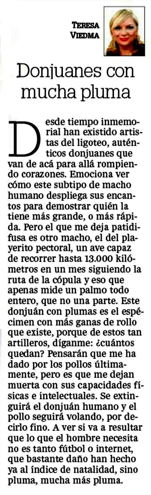 Avatar de DesconocidoAutor TeresaviedmajuradoPublicado el 08/03/201709/03/2017Formato ImagenCategorías Artículos1 comentario en DONJUANES CON MUCHA PLUMA 08/03/2017