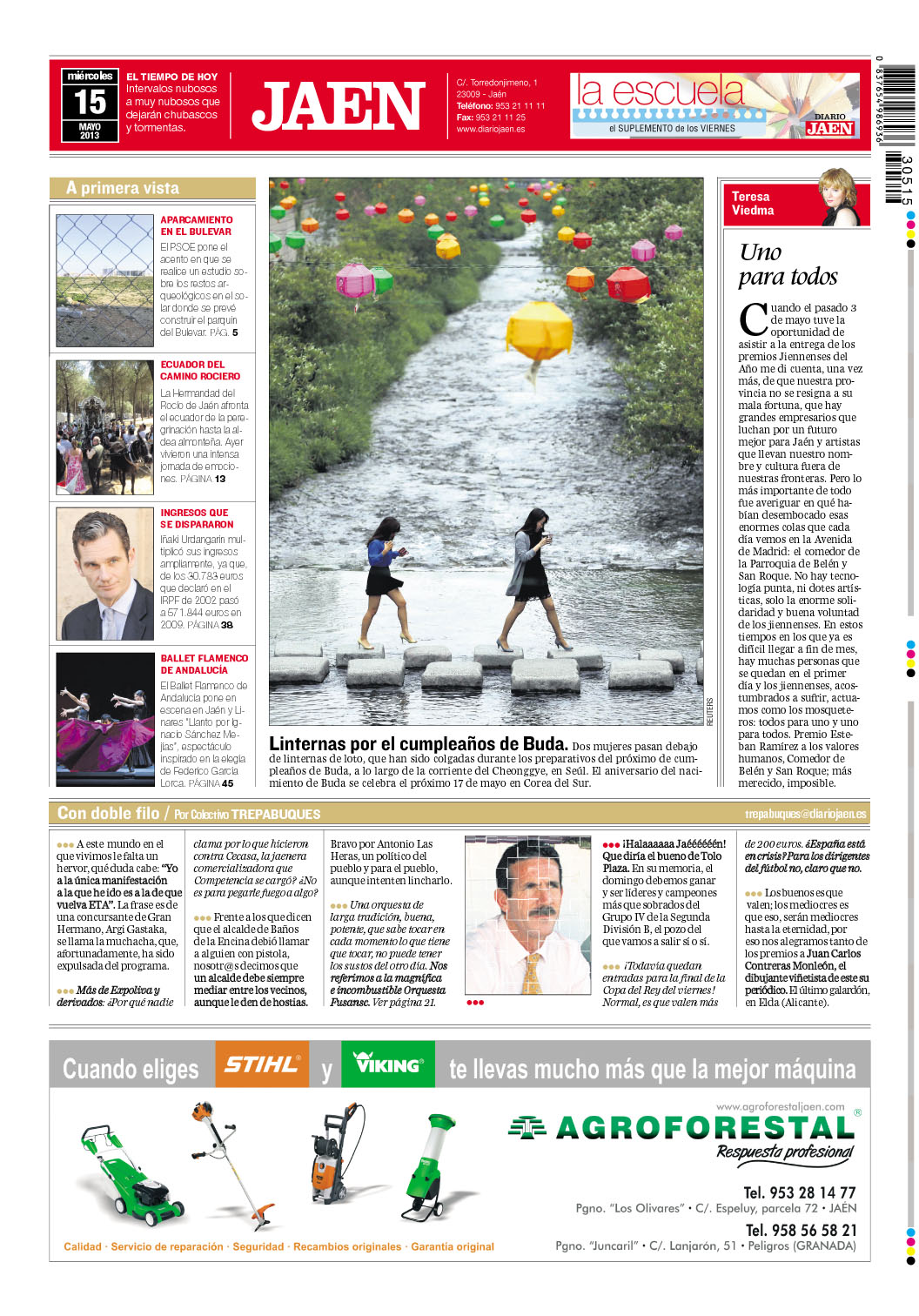 Avatar de DesconocidoAutor TeresaviedmajuradoPublicado el 15/05/201317/05/2013Formato ImagenCategorías ArtículosEtiquetas DIARIO JAEN UNO PARA TODOS4 comentarios en UNO PARA TODOS 15-05-2013