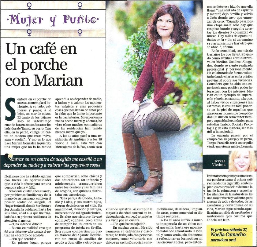 Avatar de DesconocidoAutor TeresaviedmajuradoPublicado el 05/02/201813/02/2018Formato ImagenCategorías ArtículosDeja un comentario en UN CAFÉ EN EL PORCHE CON MARIAN 20/01/18