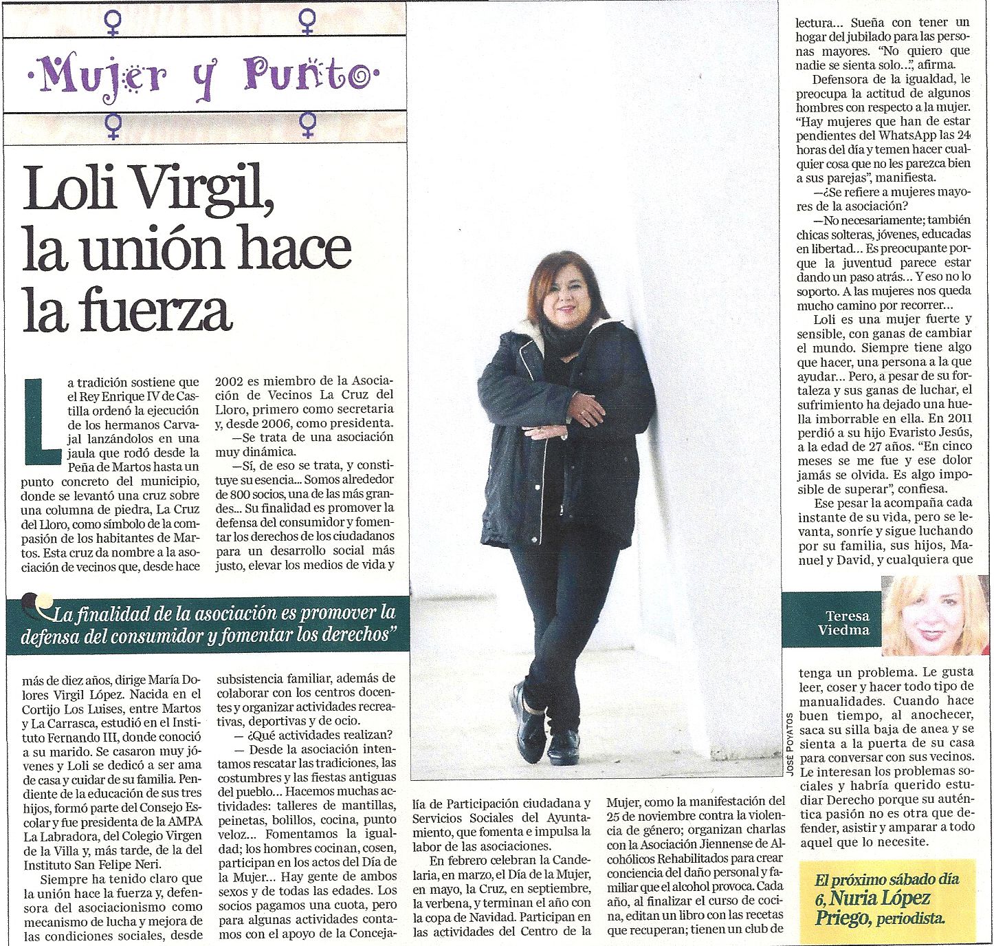 Avatar de DesconocidoAutor TeresaviedmajuradoPublicado el 19/01/2018Formato ImagenCategorías ArtículosDeja un comentario en LOLI VIRGIL, LA UNIÓN HACE LA FUERZA 30/12/17