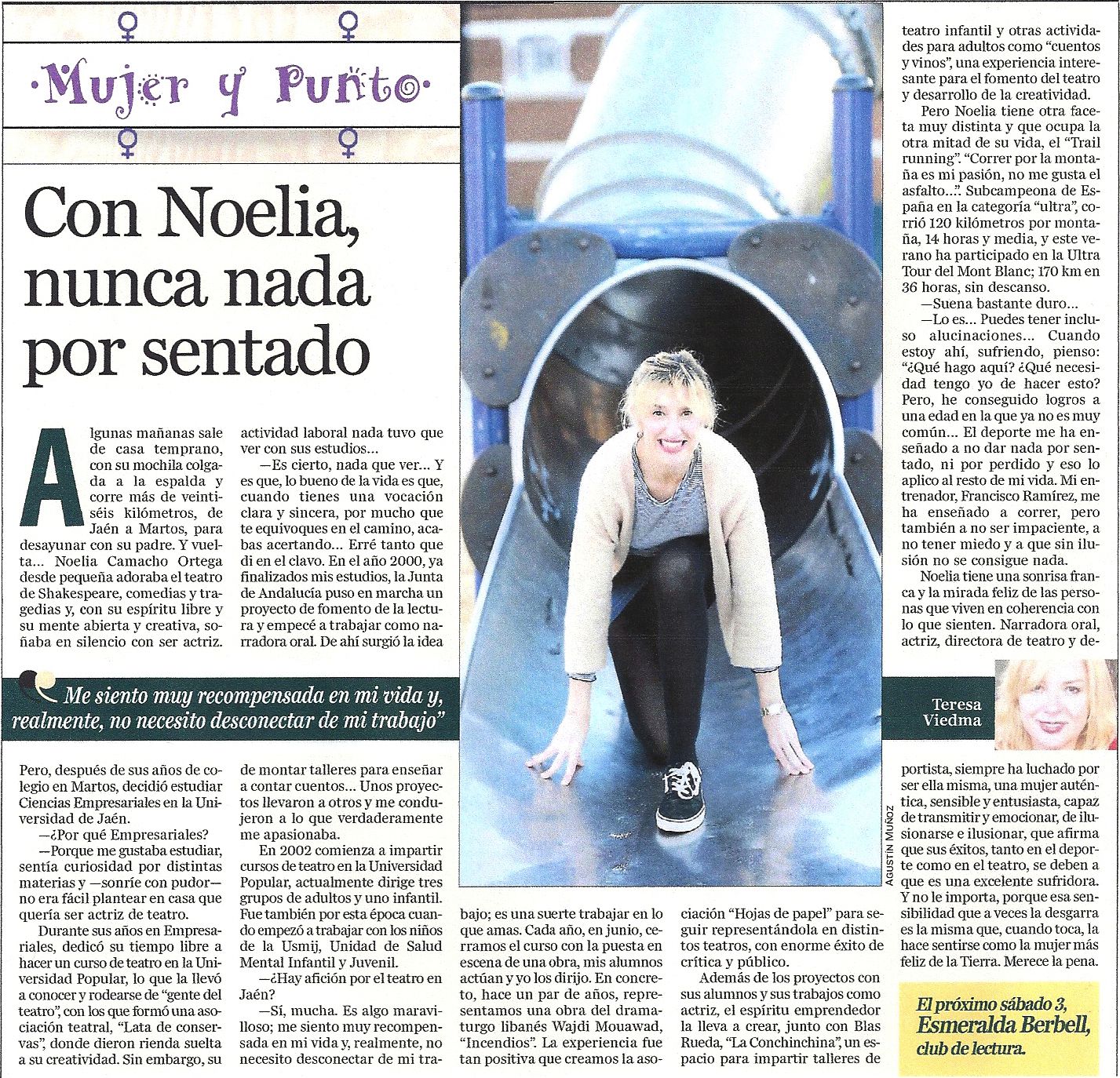 Avatar de DesconocidoAutor TeresaviedmajuradoPublicado el 31/01/2018Formato ImagenCategorías ArtículosDeja un comentario en CON NOELIA, NUNCA NADA POR SENTADO 27/01/18